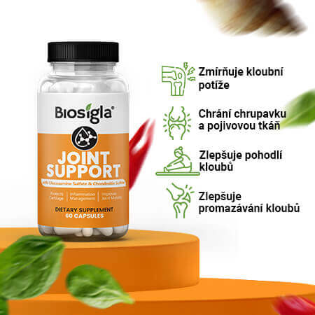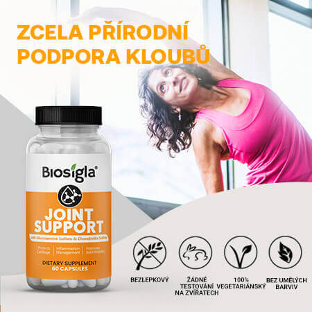 Joint Support je účinná přírodní směs zaměřená na podporu kloubů, pohyblivosti a flexibility. Pomůže vám obnovit chrupavky a kloubní struktury. Snížení zánětu ve vašem těle ochrání kloubní tkáně. Rozlučte se s bolestmi a nepříjemnými pocity, které přicházejí s věkem, váhou nebo sportovním zhoršením kloubů v těle. Zlepšená pohyblivost vám usnadní život a učiní ho šťastnějším. Ciťte se každý den pohodlněji ve své kůži!