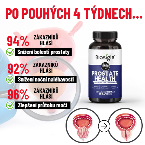 Biosigla Prostate Health nezmírňuje pouze příznaky - působí na příčinu problému a zlepšuje vaši celkovou pohodu. Snížením zánětu a podporou zdravé hladiny hormonů tento pokročilý přípravek zlepšuje funkci močových cest, což umožňuje silnější, konzistentnější tok a úplné vyprázdnění močového měchýře. Muži, kteří užívají přípravek Biosigla Prostate Health, uvádějí nejen méně návštěv toalety, ale také výrazné zlepšení kvality spánku, hladiny energie a intimního zdraví. Toto přírodní řešení vám umožní žít s větším komfortem a sebedůvěrou, bez frustrace z problémů souvisejících s prostatou.
